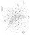 But, what is apparent by the fact that even advanced cellular systems can achieve only about a 3× increase in spectrum utilization compared to a single user utilizing the spectrum is that all of these techniques have done little to increase the aggregate data rate among shared users for a given area of coverage. In particular, as a given coverage area scales in terms of users, it becomes increasingly difficult to scale the available data rate within a given amount of spectrum to keep pace with the growth of users. For example, with cellular systems, to increase the aggregate data rate within a given area, typically the cells are subdivided into smaller cells (often called nano-cells or femto-cells). Such small cells can become extremely expensive given the limitations on where towers can be placed, and the requirement that towers must be placed in a fairly structured pattern so as to provide coverage with a minimum of “dead zones”, yet avoid interference between nearby cells using the same frequencies. Essentially, the coverage area must be mapped out, the available locations for placing towers or base stations must be identified, and then given these constraints, the designers of the cellular system must make do with the best they can. And, of course, if user data rate demands grow over time, then the designers of the cellular system must yet again remap the coverage area, try to find locations for towers or base stations, and once again work within the constraints of the circumstances. And, very often, there simply is no good solution, resulting in dead zones or inadequate aggregate data rate capacity in a coverage area. In other words, the rigid physical placement requirements of a cellular system to avoid interference among towers or base stations utilizing the same frequency results in significant difficulties and constraints in cellular system design, and often is unable to meet user data rate and coverage requirements.