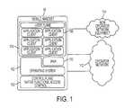 The user plane and control plane architecture of ahandset80 is discussed with regard toFIG. 1, which is disclosed in U.S. patent application Ser. No. 12/346,066, entitled “Abstraction Function for Mobile Handsets,” to J. Bolin et al, the entire content of which is incorporated herein by reference.FIG. 1 illustrates a conceptual view of a typicalmobile handset80. Therein, abottom layer100 represents the control plane, which provides the core functionality of themobile handset80, e.g., communications with the mobile phone via control signalling used to manage the connection, mobility and also some of the basic services (e.g., call control and SMS). On top of thecontrol layer100 may be the operating system OS102, which manages the phone's functionality and provides the interface to functionality for applications and clients in theuser plane104. Clients and/orapplications106, such as browsers, calendar and games, are examples of services implemented in theuser plane104, on top of theoperating system102.