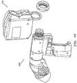 Preferably, one of the covers, in thiscase cover section41, includes a slantedsupport post166 integrally molded therein which limits the rotation at the elbow of the arm so as to restrictprobe28 from colliding withbase12 in the rest position. This is best shown inFIGS. 3,24 and26. It will be appreciated thatpost166 will thus limit unnecessary impact and abrasion.