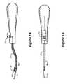 As depicted inFIGS. 1,5,10,11,12-15 and17,sheath25 extends fromhandle cavity20 at distal end ofhandle15.Sheath25 has proximal and distal ends as well as top and bottom portions.Sheath25 may be a hollow tube having dimensions of about 6 cm in length and cross-sectional dimensions of about 2.5 mm by 1.0 mm.Sheath25 attaches distally to guideprobe30 and proximally to handle15.