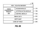 In particular, as shown inFIG. 2B,non-volatile memory56 is an example of a non-transitory computer-readable memory medium, having retrievably stored thereonimage compression module700 as described herein. According to this example embodiment, theimage compression module700 includes at least anaccess module701 for accessing image data and depth information for pixels of an image, adetermination module702 for determining a distance from a region of focus for pixels of the image by calculations that use the depth information, and acontrol module703 for controlling a bit rate for compression of the image data in accordance with the distance from the region of focus, such that more bits are used for pixels closer to the region of focus and fewer bits are used for pixels farther from the region of focus.