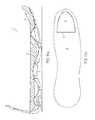 FIG. 62 shows a bottom view of an embodiment of ashoe3000, and a location of adevice3010 with respect to the bottom of theshoe3000.FIG. 63 shows a medial view of theshoe3000.FIG. 64 shows a lateral view of theshoe3000.FIG. 65 shows a top view of theshoe3000, and a location of thedevice3010 with respect to the top of theshoe3000.FIG. 66 shows a front view of theshoe3000.FIG. 67 shows a heel view of theshoe3000.FIG. 68 shows a cross sectional view of theshoe3000 along the line A-A′ fromFIG. 62 with thedevice3010 located in a midsole of theshoe3000.FIG. 69 shows a cross sectional view of theshoe3000 along the line B-B′ fromFIG. 62.FIG. 70 shows a cross sectional view of theshoe3000 along the line C-C′ fromFIG. 62.FIG. 71 shows a cross sectional view of theshoe3000 along the line D-D′ fromFIG. 62.FIG. 72 shows a cross sectional view of theshoe3000 along the line E-E′ fromFIG. 62.FIG. 73 shows a cross sectional view of theshoe3000 along the line F-F′ fromFIG. 62.FIG. 74 shows a cross sectional view of theshoe3000 along the line G-G′ fromFIG. 62.FIG. 75 shows a cross sectional view of theshoe3000 along the line H-H′ fromFIG. 62.