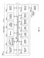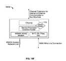 FIGS. 15A through 15F illustrate hardware diagrams of a device that include a service processor and a bus structure extension using intermediate modem or networking device combinations in accordance with various embodiments.