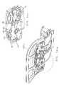 Thus, where the raised position corresponds toapex331, a givensiderail314 will move longitudinally and downward when it is moved from the raised position (FIGS. 37aand37b) toward the intermediate position (FIGS. 38aand38b) along the first arcuate path D. Where the raised position is beforeapex331, a givensiderail314 will similarly move longitudinally and downward when it is moved from the raised position toward the intermediate position along the first arcuate path D. Where the raised position is after apex331 (FIG. 37a), a givensiderail314 will move longitudinally while moving vertically upward and then downward assiderail314 traces first arcuate path D assiderail314 is moved from the raised position toward the intermediate position.