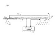 Turning now to the figures,FIG. 1 illustrates anexemplary input device100. Theinput device100 includes aninput surface110, at least onesensing electrode120, aforce sensor130 for sensing a force applied to theinput surface110 and aprocessing system140. Theinput surface110 and at least onesensing electrode120 are configured to rotate about a anaxis160 viamounting structure150. Themounting structure150 andforce sensor130 are preferably mounted on opposite ends of theinput surface110 and at least onesensing electrode120, as illustrated inFIG. 1. Themounting structure150 allows theinput surface110 and the at least onesensing electrode120 to rotate about theaxis160, represented as a fulcrum inFIG. 1, as illustrated byarrow170. In one embodiment, for example, the edge of theinput surface110 and at least onesensing electrode120 furthest from theaxis160 may only rotate approximately one to two tenths of a millimeter. However, the amount of rotation can vary depending upon the needs of theinput device100 and the sensitivity of theforce sensor130.