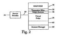 Thescript account36 containsvirtual script38 issued by theservice provider34 according to rules established by the mobile operator/service provider34. The rules are set in protocols in the microprogram of the SIM-centric transaction manager32.