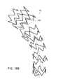 Like theend sections130,140 ofFIG. 1A, theend sections130,140 ofFIGS. 1D and 1E includefirst struts131,141 and second struts,132,142 having lengths L31, L41and L33, L42, respectively, with thefirst struts131,141 and thesecond struts132,142 being connected by peak bends133,143 and valley bends134,144, respectively. The lengths L32and L31ofend section130 may be substantially the same, the angles Avbetween pairs of first andsecond struts131,132 at each of the valley bends134 may be substantially the same, and the angles Apbetween first andsecond struts131,132 at each of the peak bends may be substantially the same. Additionally, the lengths L42and L41ofend section140 may be substantially the same, the angles Avbetween pairs of first andsecond struts142,141 at each of the valley bends144 may be substantially the same, and the angles Apbetween first andsecond struts142,141 at each of the peak bends143 may be substantially the same. The first andsecond struts131,132 of theend section130 may be longer than the first andsecond struts141,142 of theend section140. The angles Ap, Avbetween thefirst struts111,211,221,131,141 and thesecond struts112,212,222,132,142 at the peak bends113,223,213,133,143 and valley bends114,224,214,134,144, respectively, are between about 20 and about 120 degrees, and may be between about 45 and about 90 degrees. The radius of curvature for the bends (peak and valley) may be about 0.019 inches (about 0.48 millimeters).