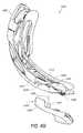 For example, as shown inFIGS. 46-47, theposterior frame component1004 can comprise on ormore fastening members1140 configured to engage with acorresponding fastening member1142 of theframe1010. Thefastening members1140,1142 can comprise hooks and loops that are formed on the respective ones of theposterior frame component1004 and theframe1010. The arrows inFIG. 47 illustrate the general mating arrangement of thefastening members1140,1142. These components can be reversed in some embodiments, such that theposterior frame component1004 comprises one or more protrusions or hooks that can mate with one or more apertures or loops formed on theframe1010. Further, other structures can be used, including the snap-fit members, protrusions, slots, channels, apertures, plugs, loops, whether deformable, deflectable, compressible, incompressible, or rigid. Such structures can be formed monolithically with the respective part such that the structures and the part form a single, continuous part. However, the structures can also be separately attached to the respective part. As illustrated inFIG. 46, in some embodiments, thefastening members1140 can be formed monolithically with theposterior frame component1004. This can advantageously reduce costs and increase the facility of coupling theposterior frame component1004 with theframe1010.
