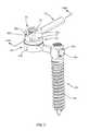 As shown generally inFIG. 1, pedicle screws are coupled to therod18 by set screws engaged with saddles, screw “tulips” and/or other connecting elements. Likewise,iliac connector36 is engaged with theiliac screw24, and is coupled to therod18, thereby connecting theiliac screw24 to therod18. In some embodiments, theconnector36 is coupled to therod18 via a second fastener54 (which may include, but is not limited to, a set screw). As described herein, therod18 may be coupled to a rod-receiver element50 of theiliac connector36 for selectively adjusting the direction of extension of at least a portion of arod18 in a first coronal plane (see generally,FIG. 2). The rod-receiver element50 may also be rotatable 360 degrees in predetermined angular increments in place relative to components of theiliac connector36 to adjust and/or fix the direction of extension of the at least a portion of therod18 in a first coronal plane such that theconnector36 is more easily engageable withiliac screws24 and portions ofrods18 extending at a variety of non-orthogonal angles relative to each other.