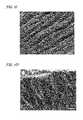Scaled-up templated films were too thick for their features to be observed by optical microscopy; therefore, the morphology of these films was investigated by SEM. Dehydration of swollen hydrogel specimens can easily create artifacts in the hydrogel structure and particularly on the surface. To minimize such artifacts the SEM specimens were extensively soaked and rinsed with methanol rather than water to remove urea. Urea is highly soluble in methanol (˜160 mg/mL) and the templated hydrogel swelled minimally. The urea crystals had been so tightly packed that the templated HA hydrogel had a fibrillar appearance. When observed from the top-down a repeating “arrowhead” fibrillar morphology of the film was clearly revealed (FIG. 5B). A curled portion of the film viewed at an angle revealed the interior crevices among the fibers that had contained the crystal template (FIG. 5C). Cross-sections of the film perpendicular and parallel to the fiber orientation are depicted inFIGS. 5D and 5E, respectively. These cross-sections demonstrate that the pore and fiber morphology was present throughout the thickness of the film and not confined to the surfaces; thus, confirming that the templates are three-dimensional.