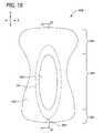 In thearticle200 illustrated inFIG. 16, thesides219 of thearticle200 and more particularly the transverse side edges of theshell214 are generally arcuate along substantially the entire length L1 of the article. Alternatively, thesides219 may be arcuate along only a portion of the length L1 of the article. It is also understood that thesides219 defining the leg cutouts may be V-shaped, U-shaped or other suitably shape, or they may be uniform (e.g., straight or longitudinal) along substantially the entire length L1 of thearticle200. It is also understood that thesides219 of the article may be contoured to definearticle200 widths other than those set forth above without departing from the scope of this invention. It is further understood that the greatest width of thearticle200 may be other than in theanterior region264, and/or the narrowest width may be other than in thecentral region265 of the article and remain within the scope of this invention.
