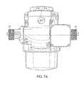 For example,pancake motor735 may substitute a magnetic coupler and generator in a meter with power generation capabilities. Magnets placed on a turbine/impeller inlower chamber710 create a magnetic field with an armature ofmotor735. Electrical energy harnessed by pancake motor may be provided to a charging system (e.g.FIG. 6), wireless communication modules193a-b,gearbox730, and the like.