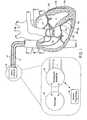 FIG. 19 showssatellite60′ incorporated into a system using hybrid conductive bus paths. The central controller is designated10′ signifying that it generally corresponds to previously describedcentral controller10. Each bus conduction path includes a first portion460 provided by an insulated conductor, a second portion465 provided by a dedicated conductor and/or electrode and/or mesh (for example a defibrillation-type electrode) that is not insulated from the subject's body, and a third portion470 that is provided by the subject's body fluids and/or tissue.