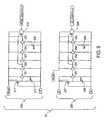 FIG. 12 is a circuit schematic of an exemplary implementation for an electrode register circuit (e.g., one ofelectrode register circuits280 and285). The electrode register circuit includes ashift register300 and aparallel register305, each comprising eight flip-flops. The flip-flops inshift register300 are serially coupled and store the incoming data bits in order. Each flip-flop inregister305 loads the output bit of a corresponding flip-flop in the shift register whenever the “switch” signal is asserted. (A previous assertion of signal “clearb_latch” resets the output bits ofregister305 to logic value “0.”) The “switch” signal is gated (NAND gate310) by the identity control signal it receives (e.g., control signal “iamit1,” if the electrode register circuit implements electrode register280). In this way, only the correct electrode address information is received byregister305 and is provided as control signals to electrode driver circuits.