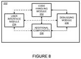 FIG. 7 is a block diagram showing anexample system200 including anapplication development tool222 configured in accordance with one or more aspects of the present subject matter. In this example, a computing device220 executes one or more software components, processes or applications to provide anapplication development interface230A. In this example,application development interface230A is provided by anapplication development tool222 as indicated by arrow228A. Computing device220 also includes a copy ofapplication code224 that is created, edited, or simply viewed usingapplication development tool222. Application development tool can include additional components such as compilers, debuggers, etc. that can be used to prepare source code and convert the source code into one or more applications.