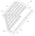 FIG. 10 is a perspective of thecomplete printhead cartridge20. Theprinthead cartridge20 has atop molding44 and a removableprotective cover42. Thetop molding44 has a central web for structural stiffness and to provide textured grip surfaces58 for manipulating the cartridge during insertion and removal. The base portion of theprotective cover42 protects theprinthead ICs100 and line ofcontacts146 prior to installation in the printer.Caps56 are integrally formed with the base portion and cover ink inlets and outlets (see54 and52 ofFIG. 12).