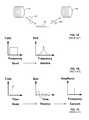 Continuous measurements mean that the magneto-elastic-resonance sensor is simultaneously excited and detected during the measurement. The frequency of the exciting field is varied during the measurement and the frequency response of the sensor is recorded. The main challenge in this type of system is to separate the relatively strong excitation field from the relatively weak sensor response. The relative frequency strengths and durations for a continuous system are shown inFIG. 1b.