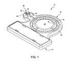 FIG. 14 is a perspective view of the anti-theft tag ofFIG. 1 used with another exemplary product having a ridged portion according to the present disclosure; and