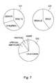 FIG. 7 shows exemplary pie charts of the exemplary demographic information measurement from a means for capturing images, where the pie charts provide useful characterization and forecasting information to the decision maker in a site or a media network.