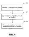 Referring to process block404, the power management controller dynamically reduces the frequency of the interface so that the interface can be operated in a non-terminated mode. In some embodiments, a PLL controller may change the clock frequency. In alternative embodiments, different control mechanisms may be used to change clock frequency.