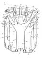 Thefirst cone pack128 has a pair ofouter support walls130a,130b. The firstouter support wall130ais mounted on theflange92 of the firstinner wall82, and the secondouter support wall130bis mounted on the upper end of theinner wall section88 of the firstinner wall82. Thefirst cone pack128 also has a pair ofinner support walls132a,132bwhich support theupper section114 of the secondinner wall110.