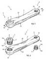 The twoinserts5,8 havethroughholes9,10 for the connection, respectively, to the bottom bracket pivot and to the pedal pivot. The throughhole9 is square for the connection to the bottom bracket pivot whereas the throughhole10 is threaded for the connection to the threaded pedal pivot. It should be clear that in different embodiments the connection holes may not be throughholes and may have a different geometric profile, matching the shape of bottom bracket and pedal pivots.