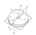 FIG. 3 illustrates an embodiment of the polarization-modulatingoptical element301 which is suited specifically for producing a tangential polarization. A detailed description will be presented in the context ofFIGS. 4dand5. The embodiment illustrated inFIG. 3 will serve to introduce several technical terms that will be used hereinafter with the specific meanings defined here.