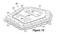 A variety of methods may be utilized to manufacturecushioning element310. In general, the methods include bonding (e.g., adhesive or thermal bonding) each ofpads313 tomaterial layers311 and312. Examples of suitable manufacturing processes are disclosed in (a) U.S. patent application Ser. No. 12/755,579, which was filed in the U.S. Patent and Trademark Office on 7 Apr. 2010 and entitled Method Of Manufacturing Cushioning Elements For Apparel And Other Products; (b) U.S. patent application Ser. No. 13/035,570, which was filed in the U.S. Patent and Trademark Office on 25 Feb. 2011 and entitled Cushioning Elements For Apparel And Other Products And Methods Of Manufacturing The Cushioning Elements; and (c) U.S. patent application Ser. No. 13/035,592, which was filed in the U.S. Patent and Trademark Office on 25 Feb. 2011 and entitled Articles Of Apparel Incorporating Cushioning Elements And Methods Of Manufacturing The Articles Of Apparel, each of which are entirely incorporated herein by reference.