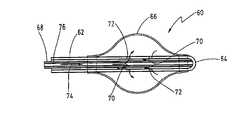 Holes72 are provided in the wall of theflexible shaft62, in an area where theballoon66 is mounted.