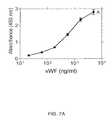 FIG. 7A-B is two graphs illustrating a double sandwich immunoassay for quantifying von Willebrand factor (vWF) in products containing FVIII, according to an embodiment of the invention.FIG. 7A shows a standard curve generated by immobilizing purified vWF on an anti-vWF mAb and detecting binding with a labeled second antibody.FIG. 7B shows quantification of vWF in commercial products containing FVIII using the immunoassay.