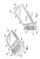 Referring again to the sectional view ofFIG. 11, in one example, an outer surface of thesidewall266 together with an outerside edge surface281 of the base210 forms one side edge of thecommunication device100 and an outer surface of thesidewall264 together with an outerside edge surface284 of the base210 forms an opposite side edge of thecommunication device100. In one example, along the sides of rectangular opening280 (FIG. 8) the terminal edges286,288 of thesidewalls264,266 that face away from thefront surface252 of the base210 are located in plane that is slightly higher than a front viewing surface of thedisplay screen204. In another example, along the sides ofrectangular opening280 theterminal edges286,288 of thesidewalls264,266 that face away from thefront surface252 of the base210 are located in plane that is substantially flush with a front viewing surface of thedisplay screen204.