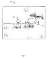 FIG. 3 is an example of a video game with the capabilities of the first embodiment illustrating using a drawing device to alter the game space by drawing a shape within the video game environment.FIG. 3 depicts a similar example of a video game as that depicted inFIG. 2 and includes the same characters and video game environment. However,FIG. 3 further depicts a user of the video game altering the game environment by drawing a shape within the video game and, hence, adding a new feature to the video game environment to interact with the characters.