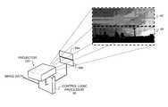 FIG. 6 is a perspective schematic view showing the use of control logic processor for analyzing image data and controlling projection and brightness attenuation apparatus accordingly;