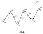 FIG. 2 illustrates a wireless ad-hoc network200 formed by afirst node210, asecond node220, athird node230, afourth node240, afifth node250, and asixth node260, labeled N1-N6, respectively. Thenetwork200 includes a first link215 (labeled L1) between thefirst node210 and thesecond node220, a second link225 (labeled L2) between thesecond node220 and thethird node230, a third link235 (labeled L3) between thethird node230 and thefourth node240, a fourth link245 (labeled L4) between thefourth node240 and thefifth node250, and a fifth link255 (labeled L5) between thefifth node250 and thesixth node260. In this example, there are no other communication links among the nodes. However, there may be an end to end flow from thefirst node210 to thesixth node260 through theintermediate nodes220,230,240, and250, but this is not required. Communications occur via a common access medium, such as through Time-Frequency Interleaving (TFI) or Fixed Frequency Interleaving (FFI) in ECMA-368. For discussion purposes, traffic flow in the direction of thesixth node260 side of thenetwork200 from thefirst node210 side of thenetwork200 is referred to as downstream, whereas traffic flow in the direction of thefirst node210 side of thenetwork200 from thesixth node260 side of thenetwork200 is referred to as upstream.