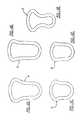 FIGS. 79A-B illustrate an exemplary stabilizingbody620, wherein aposterior spring621 is disposed therein.Wireform622 is disposed through the remainder of the stabilizing body, and is coupled to either end ofspring621. The stabilizing body has a configuration that is generally curved upwards in the anterior region.