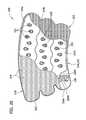 FIG. 20 is a front elevation of a compression sleeve of another embodiment with an outer cover and intermediate layers of the sleeve partially removed to show underlying layers;