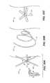 In other variations, the nasal portion is configured from one or more pliable filaments. Referring toFIG. 20A,nasal portion218 is formed from a plurality offilaments220 configured as radially extending spokes, which may be inserted as a more compact bundle of aligned parallel spokes, then deployed or unfurled so as to encircle the insertion point (see arrows and insertion view). Similarly, inFIG. 20C,nasal portion226 is formed from a plurality of strip-like filaments228. InFIG. 20B,nasal portion222 is formed from a singlepliable filament224 configured as a spiral/helical structure. Another exemplary nasal portion is depicted inFIG. 20F, which comprises a compressible woven or nonwoven fold of sheeted material in the form of a wing-shaped tube, intended to adjustably conform to and support the middle meatus space and turbinate anatomy directly outside of an ostium.