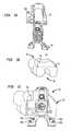 To rotate the outer part of the body relative to the central part, one presses push-button145 down toward the central part proximal face. The button is linked to a restrainingelement150 having a multiple of teeth that mesh with teeth on the top of the outer part. When the button is pushed, the restraining element moves away from the top of the outer part (i.e. in a direction toward the base of the central part), and thereby the teeth of the restraining element are decoupled from the teeth on the top of the outer part. Once the restraining element and outer part are decoupled, the outer part is free to rotate aboutaxis135. After the outer part has been rotated to the desired position, the button is allowed to return to its original position, causing the restraining element to once again mesh with the top of the outer part and thereby locking the outer part in the desired position. The meshed teeth arrangement of the restraining element and the top of the outer part preferably provide rotation in 1 degree increments. However, it should be noted that the teeth can be arranged such that the increments are other than 1 degree. Moreover, the teeth can be eliminated so as to provide an infinitely variable adjustment.