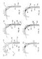FIG. 19 is a fragmentary cross-sectional view of human arteries including the aorta with the assembly of the present invention in a first step of a method for inserting the prosthesis according to the invention;