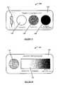 AsFIGS. 1C-1E illustrate, a series of visual indicators116-120 or a single sliding scalevisual indicator122 can also be disposed on the front face of thefood safety device100 to indicate product freshness and/or safety. Those visual indicators116-124 can be provided in the form of a chemical strip (see, e.g., the '274 patent, the '339 patent, and the '283 patent), a light emitting diode (LED) or a liquid crystal display (LCD) (see, e.g., '424 patent and the '183 patent), or any other suitable visual indicator. The series of visual indicators116-120 can be different colors with each color representing a different level of product freshness and/or safety. And the sliding scalevisual indicator122 can progressively illuminate or change color to represent different levels of product freshness and/or safety. For example, the firstvisual indicator116 will display a green color when the product is fresh and/or not contaminated. The secondvisual indicator118 will display a yellow color when the product has experienced some condition that may contribute to spoilage or contamination (e.g., passage of time, temperature change, etc.). And the thirdvisual indicator120 will display a red color when the product has spoiled and/or has been contaminated. Or, in the alternative, the sliding scalevisual indicator122 will gradually change from green to red as each of those conditions occurs.