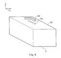 FIG. 4 is a perspective view of thereader apparatus1 showing its external form. Thehousing12 and slit-shapedreading aperture10 are evident. Aphysical location aid42 is also apparent and is provided for positioning an article of a given form in a fixed position in relation to the readingaperture10. In the illustrated example, thephysical location aid42 is in the form of a right-angle bracket in which the corner of a document or packaging box can be located. This ensures that the same part of the article can be positioned in the readingaperture10 whenever the article needs to be scanned. A simple angle bracket or equivalent, is sufficient for articles with a well-defined corner, such as sheets of paper, passports, ID cards and packaging boxes.