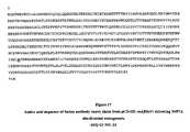 | Lower case indicates the 3rd letter codon nucleotide substituted to reduce the Tm of stable hairpin loops to 30-46° C. Overlapping ODNs are 76-88 nt long with 24 nt overlap at both ends. All ODNs were reconfirmed by reverse testing, wherein the cDNA was constructed from the ODNs, and the former translated. The translated protein was identical to the expected one. |