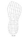 FIG. 49 is an image of a foot sensor grid (without drone electrodes) with column and row electrodes overlaid on top of each other. The column electrodes are drawn with solid lines, and the row electrodes are drawn with dotted lines. The grid has an 8×10 resolution. It is distorted in such a way as to match the natural shape of a foot, so that it can be used as an insole. Wires connecting to electronics are not shown. In a physical embodiment, the wires from the rows and columns could run to the area under the arch, where a microcontroller could be embedded.