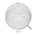 The principle of the UnMousePad sensor is applicable to applications in which the rows and columns to not run in straight lines, are not strictly parallel and/or do not cross each other at a 90 degree angle. For example, an UnMousePad sensor grid can be continually distorted so that it fills a circle (seeFIGS. 43-49). Alternately, a circular sensor can be created by providing one side of the sensors with wires that go out from the center to the outside in a radial fashion, while the other side of the sensor is provided with lines that form concentric rings (seeFIG. 43). An UnMousePad sensor can also be a distorted grid. For instance, when used in shoes the grid can be squished in the center (directly below the arch of the foot), while being distorted at the top to match the slant of the toes. Drone conductors can be disposed between electrodes in just the same way as with an UnMousePad sensor that has a regular grid.