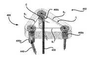 Now referring toFIGS. 4 and 5, moreover, theplate member402 defines apassage409 in the body portion and along a longitudinal axis A such that cross-sectionally, the center, C, of thepassage409 is located inside the triangle Δ. Thepassage409 is configured, in operation, to be coincided along a planned trajectory and allow a surgical instrument, in place of apassage member430 as illustrated inFIG. 4, to pass through the passage to reach the target of interest of the living subject.