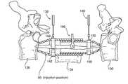 Referring now toFIG. 9, it is contemplated that the injection ofPMMA170 is complete and thattrocar166 has been removed. Furthermore,FIG. 9 contemplates, if desired, the further movement of firsthollow rod54 along the direction of arrow H to further embedend62 intovertebral body126, or the further movement of secondhollow rod58 along the direction of arrow I to further embedend90 intovertebral body130.