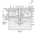 FIG. 2 depicts an exemplary pixel of an infrared radiation detector having a HDVIP® structure in which the photodiode of the pixel is formed to have an upside-down graded multilayer absorber shown inFIG. 1;