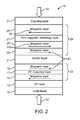 Thelayers206,208 and210 comprise the fixedlayer194 of theelement200 and thelayers214,216,218,220, and222 comprise thefree layer196. As previously explained regarding other embodiments, the fixedlayer194 has a fixed magnetic orientation after manufacturing of theelement200 whereas the magnetic orientation of thefree layer196 switches relative to that of thelayer194 causing storage of data in theelement200. Thelayer212 serves as an insulating layer producing magneto-resistance between thelayers194 and196.