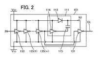 FIG. 2 illustrates a configuration in which m inverters (an inverter135(1) to an inverter135(m)) are connected in series between theinverter133 and thebootstrap circuit111. Here, it is preferable that the number of m inverters that are connected in series be even.