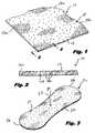 The barrier layer may be breathable, i.e., permits vapor to transpire. Known materials for this purpose include nonwoven materials and microporous films in which microporosity is created by, inter alia, stretching an oriented film. Single or multiple layers of permeable films, fabrics, melt-blown materials, and combinations thereof that provide a tortuous path, and/or whose surface characteristics provide a liquid surface repellent to the penetration of liquids may also be used to provide a breathable backsheet. The cover layer42 and thebarrier layer50 are joined along their marginal portions so as to form an enclosure or flange seal that maintains theabsorbent layer44 captive. The joint may be made by means of adhesives, heat-bonding, ultrasonic bonding, radio frequency sealing, mechanical crimping, and the like and combinations thereof.